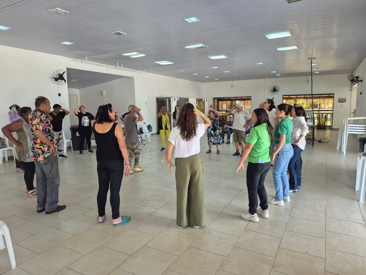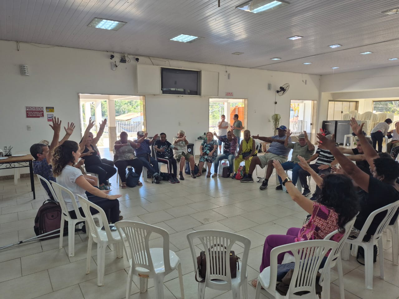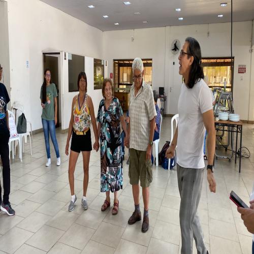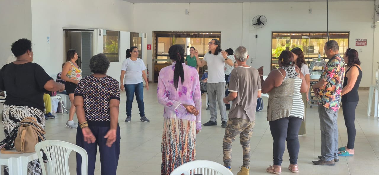 Uma programação especial foi pensada para que os idosos assistidos, a maioria em situação de vulnerabilidades diversas, pudessem vivenciar momentos de cuidado, integração e lazer. A diretoria do Sindicato abriu as portas do Clube dos Bancários e ofereceu toda a estrutura para a realização de atividades como relaxamento, yoga, práticas de atenção à saúde e escuta, dança, palestras e muita alegria.