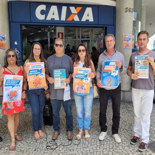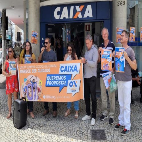 Atos e manifestações diversas marcaram a manhã desta terça-feira (7). Isso porque a Caixa Econômica Federal se nega a apresentar uma proposta de custeio do plano de saúde que valorize as empregadas e empregados.