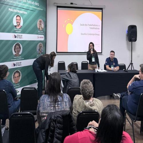 A Fetrafi-MG realizou nesta quarta-feira (22/10) o Seminário de Saúde. O evento teve como tema: “Um olhar atento à saúde do trabalhador e da trabalhadora” e contou com a presença de dirigentes de sindicatos de todo o estado filiados à federação.